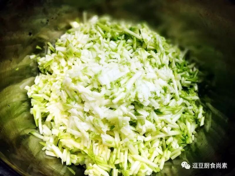 西葫芦切好后不用挤水,因为煎的过程中,出汤也会渗入面皮,即可防止锅贴过干,还可以更加入味。