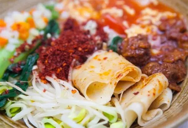 蓝田荞面饸饹以花荞和苦荞为原料,常见吃法有两吃:一种是凉吃;另一种是热吃。