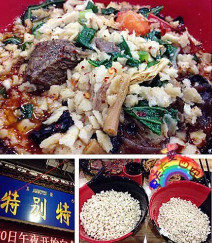 小吃品种:各地风味小吃,炒菜、砂锅米线、麻辣烫、饺子、烤肉烤鱼、涮牛肚、牛羊肉泡馍等。