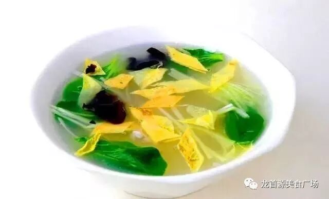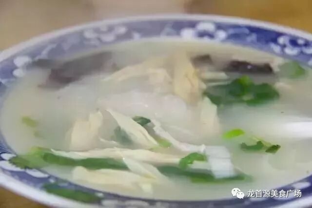 4、去掉余油置放碗中,用白汤适量,放入锅内煮沸,加盐、姜末、葱片,盛入碗中,加上香油少许即成