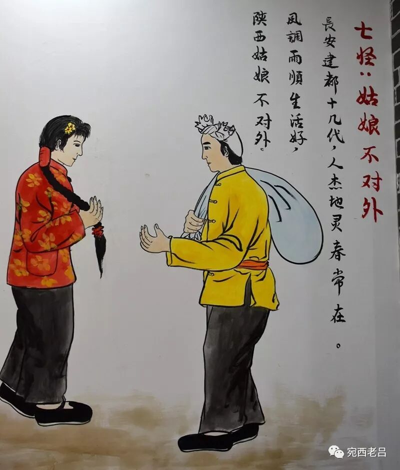 这一怪很多地区都有,只是在关中地区现象更突显,人情味也更浓郁。"两亩地一头牛,老婆孩子热炕头"是关中男人的写照,它的正面意思是关中男人恋家恋婆娘,在"玩龙玩虎不如玩黄土"的小农时代,这种思想也算正统。