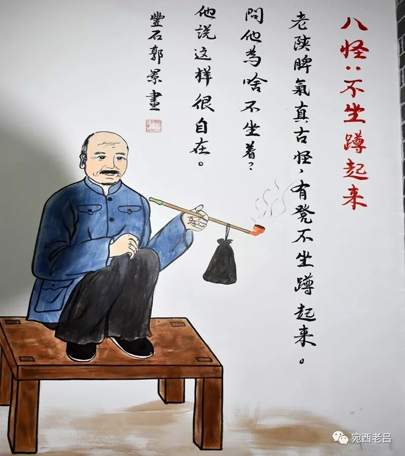 "蹲景"成为关中地区特别是农村最有名的亮点,这一怪独步天下,有的人蹲半天腿不酸腰不痛,实属一种硬功夫关中人把蹲叫圪蹴。蹲是讲功夫的,只有长年累月的历练,才能长蹲而心静气闲,不累不乏。