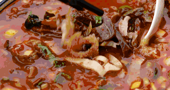 羊肝、羊肚、羊肺、羊头肉尽在其中。搅拌一下,浓郁的香气铺面而来,一口下去,不同的部位交错出不同的口感,丰富又有层次。