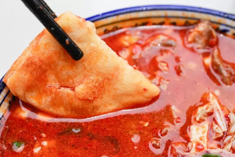 还可以蘸着火辣的羊汤一起吃。