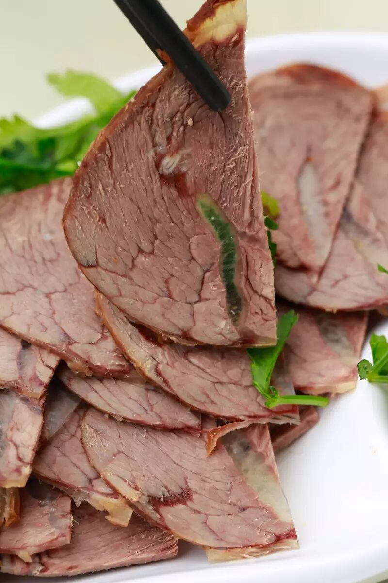 酱牛肉切得又薄又宽,香味淡淡的,比较清淡,要慢慢咀嚼才能吃出里面独特的味道。