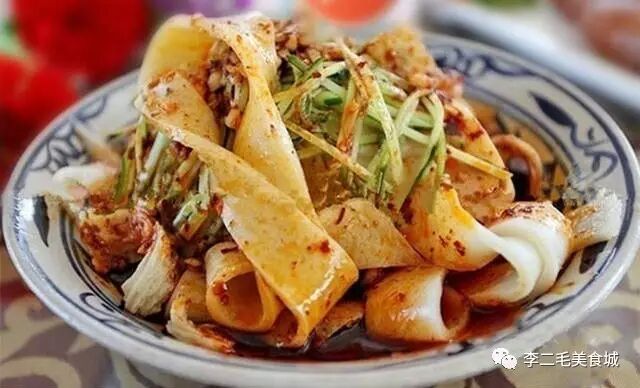 凉皮又称陕西凉皮,是陕西省汉族特色小吃之一。现有西府宝鸡擀面皮(发源于岐山县)、汉中米皮、秦镇米皮等流派。 凉皮历史久远,凉皮传说源于秦始皇时期,距今已有两千多年历史,相传有一年陕西户县秦镇一带大旱,稻谷枯萎,百姓无法向朝廷纳供大米,有个叫李十二的用大米碾成面粉,蒸出面皮,献给秦始皇,秦始皇吃后大喜,命每天制作食用,形成了久负盛名的汉族传统小吃——秦镇大米面皮子。后因战乱失传。
