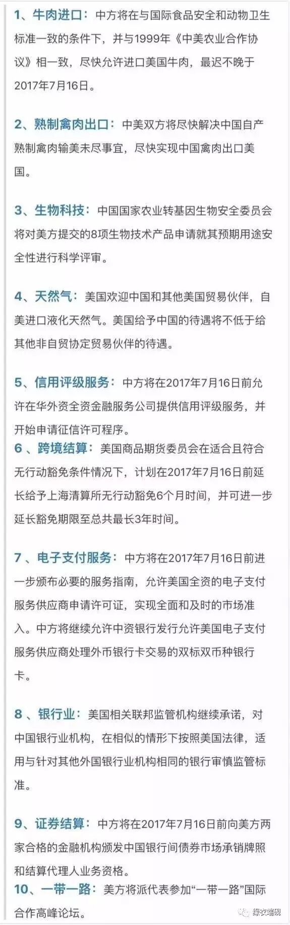 诚如我上次所提到的,原先热热闹闹半岛闹剧演绎的离奇曲折荡气回肠,让全世界的观众都看得激情澎湃高潮不断。突然间戛然而止,没有给人留下任何回旋的余地。就在我们一头雾水之间,央视新闻微信公众号的一则新闻给闹剧的结束做出了圆满的回答。新闻如是说:在元首海湖庄园会晤一个月之际,双方就农产品贸易、金融服务、投资和能源等领域的问题达成了十项共识。