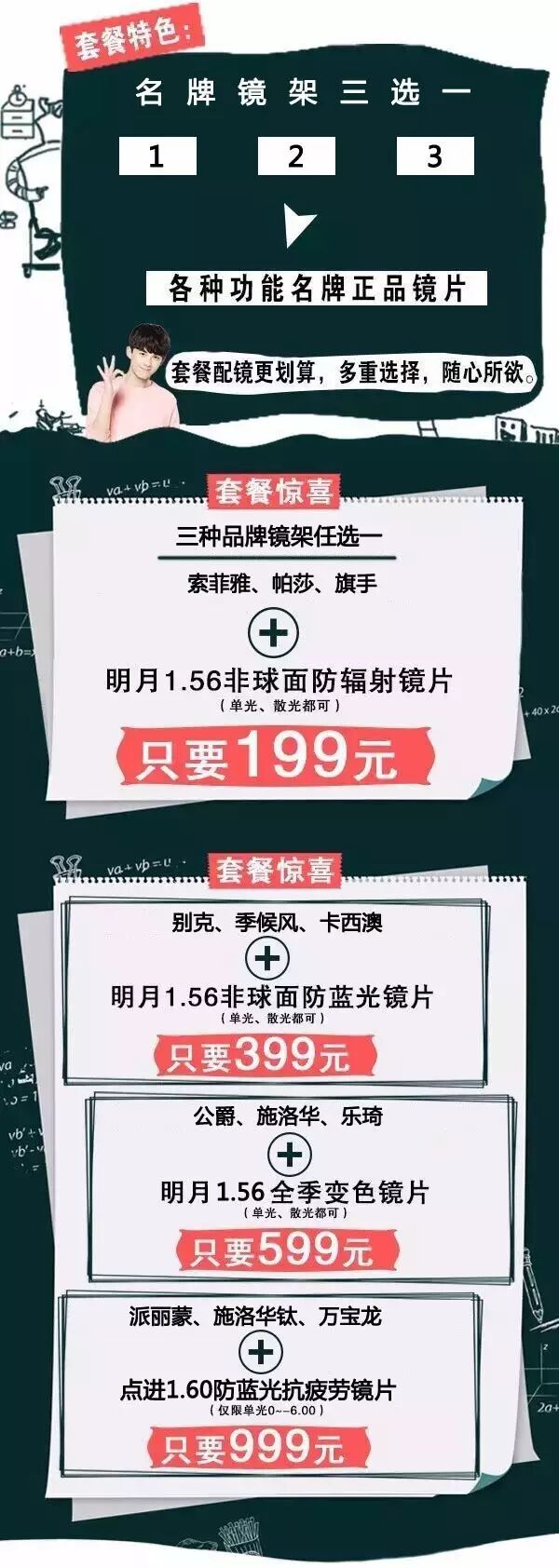 ②四重套餐惠享,套餐配镜更划算,只要199、399、599、999!