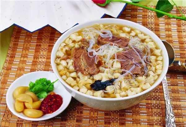 西安的牛羊肉泡馍非常出名,是当地的著名小吃,历史悠久,古时候被称为“羊”,是一种难得的滋补佳品。风味特点是料重味重,肉烂汤浓、香醇味美、粘绵韧滑。