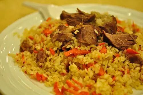 新疆语又称“波劳”。新疆最好的抓饭米粒应该是松散的,胡萝卜是金黄的,羊肉是带骨头的,香气是可以醉倒人的。