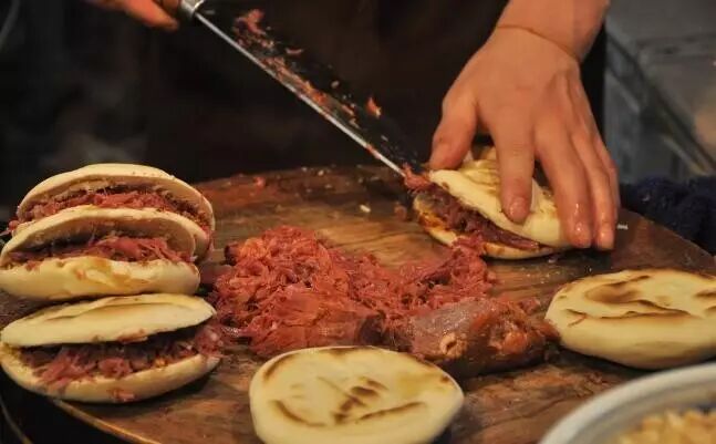 作为广受重庆人喜爱的肉夹馍,到了它的故乡岂有不吃的道理?古人有云:“肥肉吃了不腻口,瘦肉无法满嘴油。不用牙咬肉自烂,食后余香久不散。”