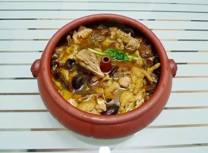 汽锅鸡是云南独特的滋补菜,是传统云南菜的代表,因用汽锅蒸制而得名。汤汁是用蒸汽凝成,因此鸡肉的鲜味丧失较少,很好地保持了鸡的原汁原味。