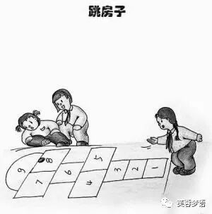 踢房子就比较简单些,不分男女。地上用粉笔画两排十个房子,扔块小石头踢房子,人们分成两组进行竞赛,看哪一组先完成就获胜。