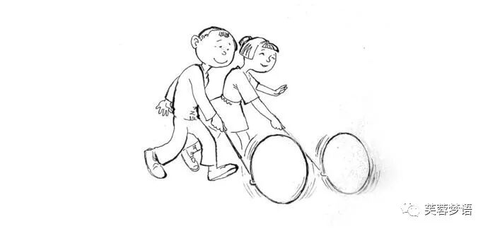 滚铁环是那时候全国小孩都玩的游戏了,只是我们那儿的铁环,好一点的铁环是家里水桶的箍子,其次就是自己用铁丝敲一个圆环了。水桶箍子圆整度好、环有一定宽度,滚起来比较稳定、不容易倒,大家都比较喜欢,但是必须是家里坏掉有水桶或者木盆才能弄到,所以,有很多小朋友就化着心思把家里的水桶和木盆弄坏,与父母斗智斗勇,常常因此挨了不少打。简陋的铁环常常是用粗一些的建筑铁丝做成,那时候生产队常常有铁丝,我们就偷偷剪一些下来,箍在圆筒上敲成铁环,这样的铁环常常有一个接口不平整,滚起来不顺畅,但是能有得滚就不错了。比赛是常有的事情,两个人一组从同一个出发点同时出发,看谁滚的时间久就算获胜。这个游戏我的水平一般般。