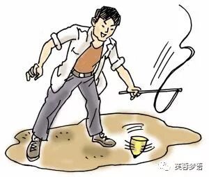打陀螺是一项冬天里开展的好运动。因为用力抽打陀螺,身体容易发热,可以抵抗晒谷场的风寒。晒谷场平坦光滑,是打陀螺的好地方。陀螺都是自制的,以扎实的油茶树最佳,沉重且不容易开裂,锥部镶一颗小钉,就是当时上好的陀螺了。晒谷场上人手一只陀螺,飞旋着比赛,那种景况非常壮观。