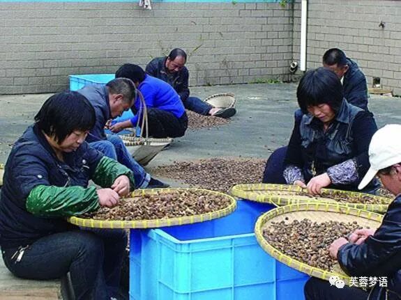 晒谷场上的冬晒,主要是晒苕粉、苕丝和油茶籽。今天专门介绍晒油茶籽。秋末冬初,人们把油茶果从山上摘回,堆积到晒谷场上,经过一段时间日晒,茶果皮会开裂,露出油茶果仁,这时候就可以分拣堆积如山的油茶子了。人们常常在晴天的太阳之下劳动的,坐一张小板凳,在油茶果堆里分拣油茶果仁。其时,有一个特别的收获,就是茶果里长有白色的油茶虫子,这种虫子用油炸一下非常香脆,营养丰富,因此,这是分拣茶子的副收入,是小孩们的最爱,这也是我们这些小孩最爱参与分拣茶子的原因吧。