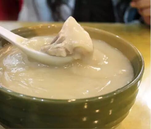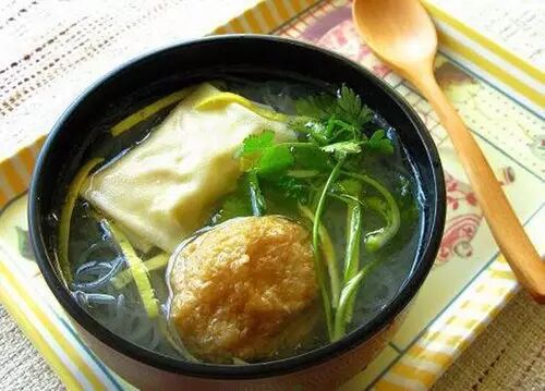 ◆ 油豆腐线粉汤是上海地区汉族传统小吃。干点配湿点,这是平常上海人习惯的饮食方法。而湿点中油豆腐线粉汤则是保留节目。虽然它看上去有点清汤寡水,但配生煎等油腻的点心,则是绝配。而且看它的烧制过程也是一个享受:锅内汤汁翻滚,煮着铁丝网勺里的线粉,闻一闻,香气四溢。