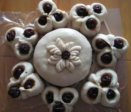 ◆枣馍种类各异,通常有枣花、枣山、枣卷、枣圆等,但最常见的还是枣山和枣花两种。腊月三十这天,年前的准备都已就绪,人们请出神像和祖宗牌位,把枣山年馍和其他供品恭恭敬敬摆上供桌。枣山年馍要一直供到农历二月初二。听老人讲,这习俗源于先祖明朝时从遥远的山西洪洞县搬迁到这里,为纪念家人,每年年首岁尾,就在宗庙里以此祭奠祖宗,一直流传至今。