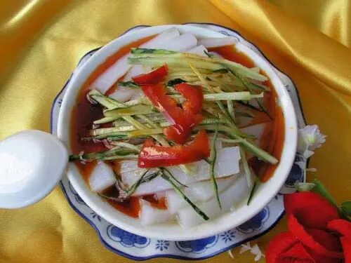 ◆承德一带居民食用凉粉已有300多年的历史。人们所以喜欢食用凉粉,不仅因它味美消暑,还因为它含有丰富的营养。据《中药大辞典》载:绿豆凉粉有"清热解毒,治痛疽疮肿初起,烫伤,跌外伤,并解热药及酒食诸毒。