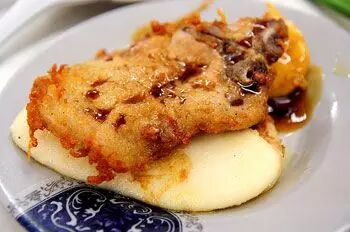 ◆ 蟹壳黄,上海知名汉族小吃,属本帮菜。因其形圆色黄似蟹壳而得名。蟹壳黄是用油酥加酵面作坯,先制成扁圆形小饼,外沾一层芝麻,贴在烘炉壁上烘烤而成。此饼味美咸甜适口,皮酥香脆。有人写诗赞它“未见饼家先闻香,入口酥皮纷纷下”。蟹壳黄的馅心有咸、甜两种。咸味的有葱油、鲜肉、蟹粉、虾仁等,甜的有白糖、玫瑰、豆沙、枣泥等品种。蟹壳黄小吃店主要集中在枫泾古镇和朱家角镇。