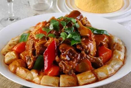 ◆ 馕包肉维吾尔语称为"塔瓦喀瓦甫",属新潮小吃品种,是新疆风味名食之一。 馕包肉这种面肉合一的风味美食非常能代表新疆的传统民族特色。