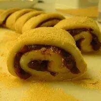 ◆ 承德地区盛产黍米,承德叫黄米,性粘。"驴打滚"就是用黍米做成的一种大众化小吃,在承德已有200多年的历史。"驴打滚"是用黄米夹馅卷成的长卷,因卷下铺黄豆面,吃时将长卷滚上豆面,样子颇似驴儿打滚,因此得名。