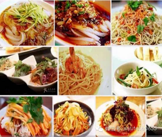 黄面属夏令风味小吃,面细润滑、酸香辣凉、为夏令风味小吃,又名新疆凉面。