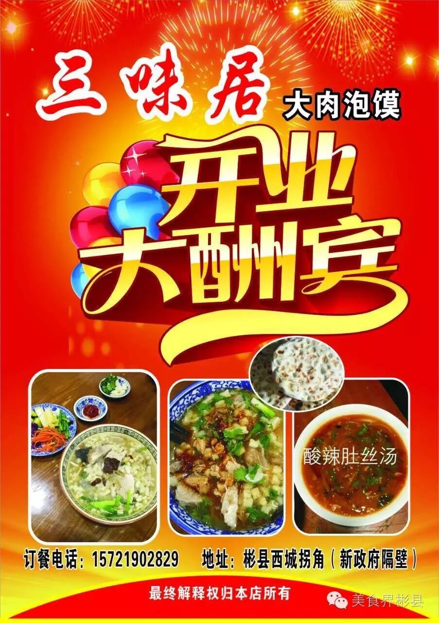 彬县“三味居”大肉泡馍馆,现已正式盛大开业!