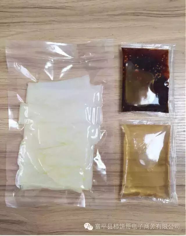 星星来客真空袋装的擀面皮,里面有面皮,一包辣子油、一包醋水,调味的时候根据自身口味轻重,酌量加入,尽情享用美味吧!