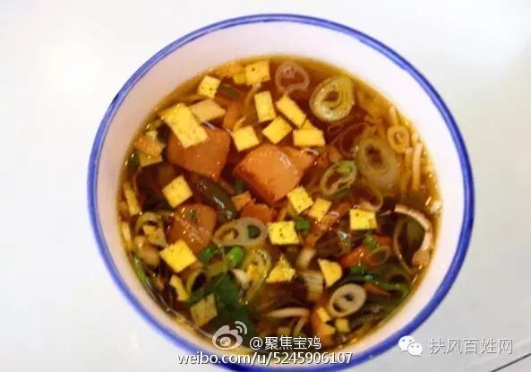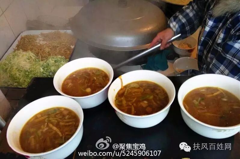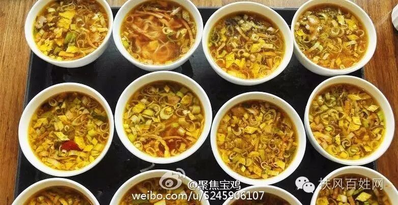 宝鸡扶风地处关中西部的渭河平原与乔山南麓的渭北塬上,自古盛产小麦、玉米、油菜,素有“麦、米、菜籽油之乡”之美誉。在扶风的面食中,最具特色的是臊子面了。臊子面是用小麦上等面粉擀成面页,再用压面机压成细面,入锅煮熟后,捞入用猪肉臊子、盐、醋等佐料做成的香汤而成,它有“薄、劲、光、煎、稀、汪、酸、辣、香”九大特点。 来扶风玩,若没吃一口香,等于没来过扶风。嫽扎咧!