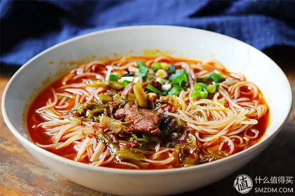 酸菜挺少的,煮出来就是普通的牛肉面的汤的感觉。不过粉虽然细,但是比一般的米粉要难煮一点,在锅子里会团成一团。汤很好喝,牛肉也不错,米粉很细,口感很爽滑。口味是四川那边的鲜麻鲜麻的,喜欢川菜的小伙伴可以尝试一下。