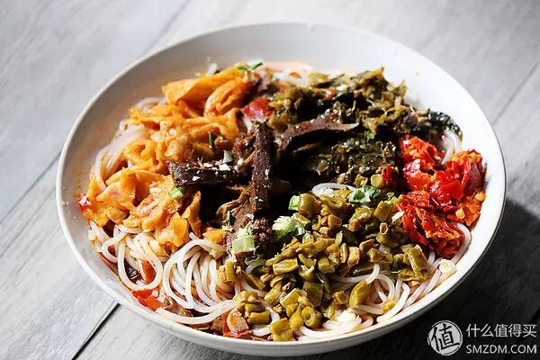 云南当地的过桥米线配料丰富,入手的这袋应该是个精简版,米线开袋之后会有一股酸味,煮好再沥干酸味自然就散了。不得不说这汤一股浓郁的辣条味~拍照的时候就忍不住一直OS:难道是卫龙赞助的?忍不住来一口,米线超糯超Q弹!总之一个字:棒!