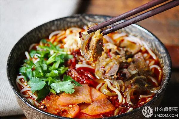 配料:羊肉原汤、油辣椒、半干米粉、羊肉片、酸萝卜片