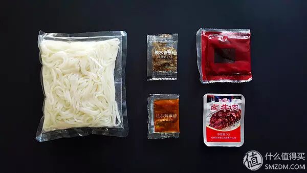 ![配料:米粉、卤水、红烧牛肉、桂林辣椒酱、脱水葱花]()