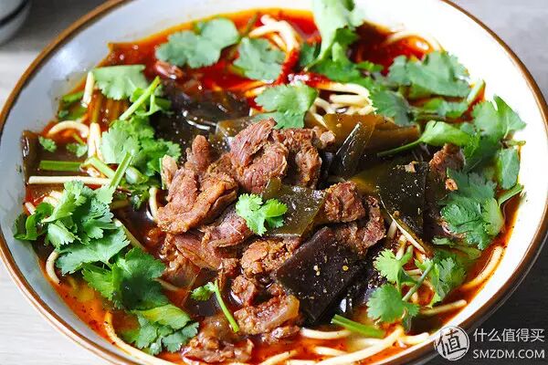 配料:手工面条、牛肉原汤、卤牛肉、脱水蒜苗、脱水香菜、油泼辣