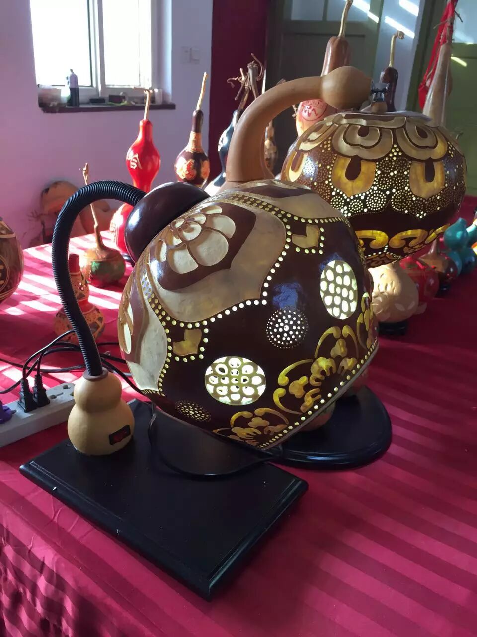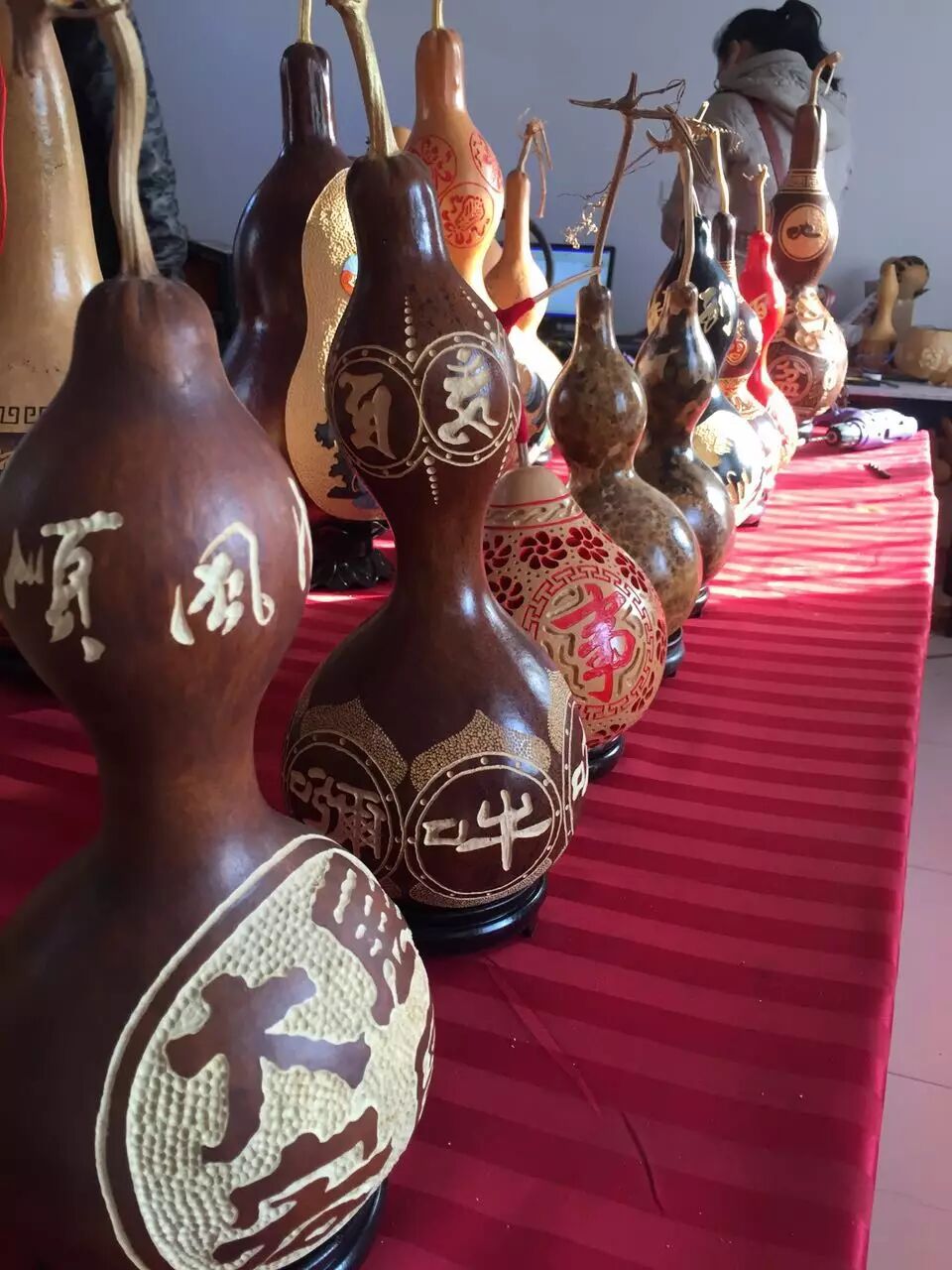 走进任县农兴蔬菜种植专业合作社的葫芦工作室,映入眼帘的便是大大小小的葫芦,墨刻葫芦、烙画葫芦、针刻葫芦、工笔画葫芦、葫芦罐、葫芦台灯等。在这眼花缭乱的葫芦世界里流露出一种田园牧歌式的情怀。