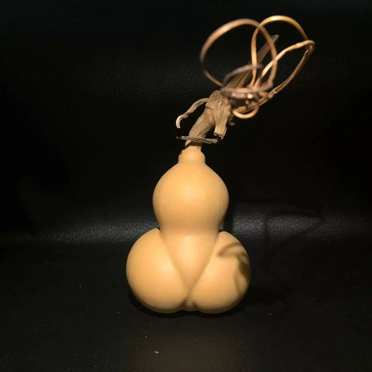 文玩葫芦尤其是手捻葫芦,越小越受市场欢迎挑葫芦最关键的是要看大小,高度在2-2.5厘米的最好,品相好的价位在800元左右,有的甚至上千元,3-4厘米的尚可,好的能卖到500多块钱,而高度在5厘米以上的即使品相再好也只能卖几十块钱;其次,要看品相,周正好看至关重要,葫芦的上下两截要差不多大,上面要有“龙头”,也就是葫芦嘴上面的一小段葫芦藤,中间腰要细,底部的花蒂要小而好看。