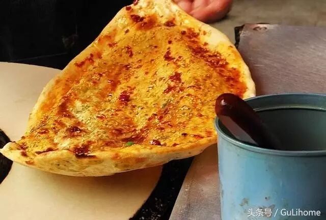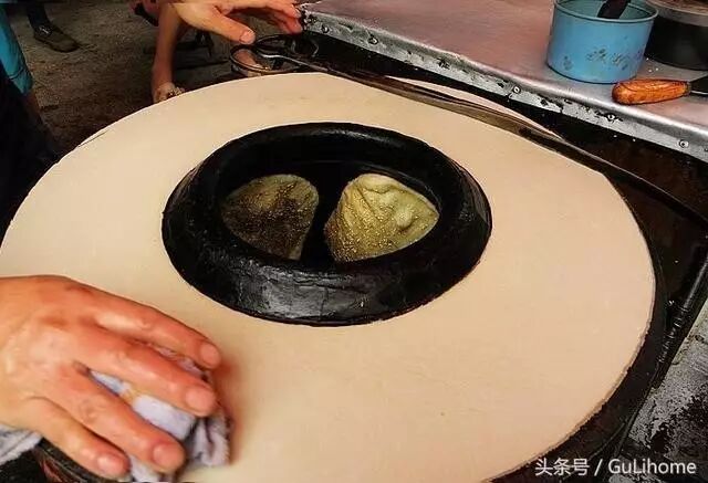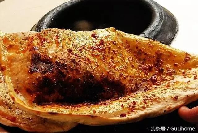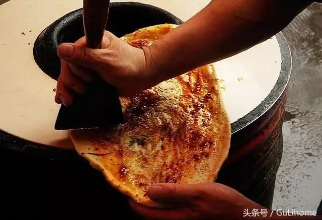 锅盔的历史来源悠久,外观有点像宁夏少数民族的囊,不过其味道和厚度都符合物产丰富的湖北特色。