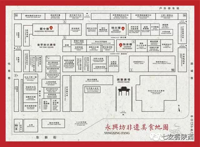 现在啊,这里可不再是那鬼市啦,沿顺城巷专门建立了古玩市场,在这小东门口这个通衢之地,重建了仿古的社区——永兴坊,专门展示陕西省境内的非物质文化遗产美食文化。从此,咱大西安的吃货们和南来的北往的朋友们就可以从容信步于永兴坊的关中街、陕北街、陕南街上,一站吃遍咱三秦的美食美味啦。