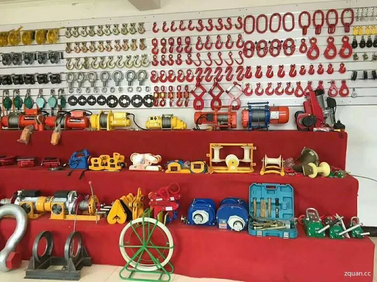 起重工具包括:手拉葫芦(1T-20T)、手搬葫芦(0.75T-9T)电动葫芦(0.5T-10T)、微型电动葫芦(200公斤-1000公斤)、多功能提升机(三相、单项)吊带、千斤顶、吸盘、电子秤、紧线器、钢板吊钳、室内外吊运机、手动叉车、搬运车(地牛)、大小吊索具。