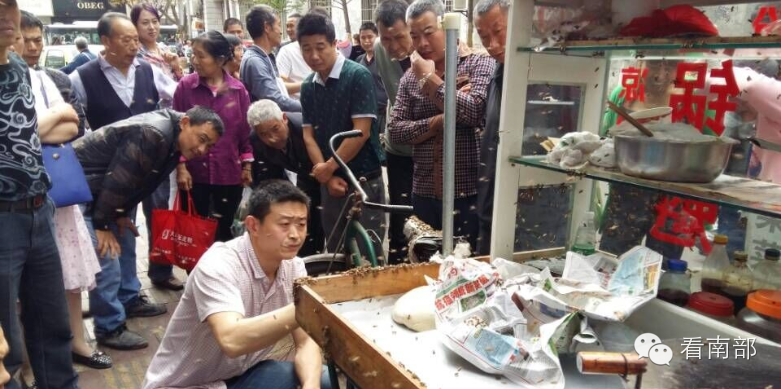 南充文化巷很多人围在一起看什么东西,于是就稀奇的靠了过去,天啊,好多蜜蜂包围着锅盔摊摊,难道是闻到了红糖的味道?