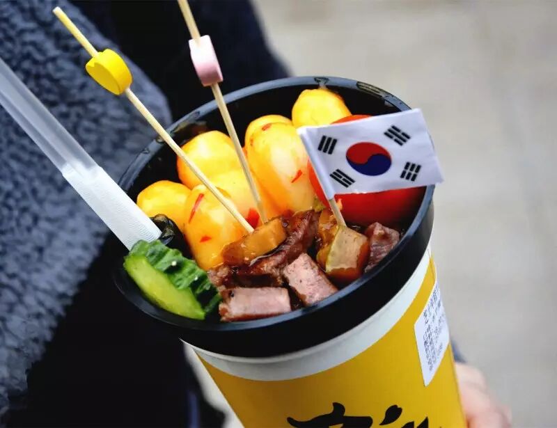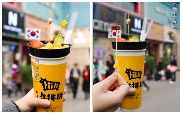 网红美食之一,拍照必备,好看又很有创意的牛排杯!将牛排放入杯子中,边走边吃~