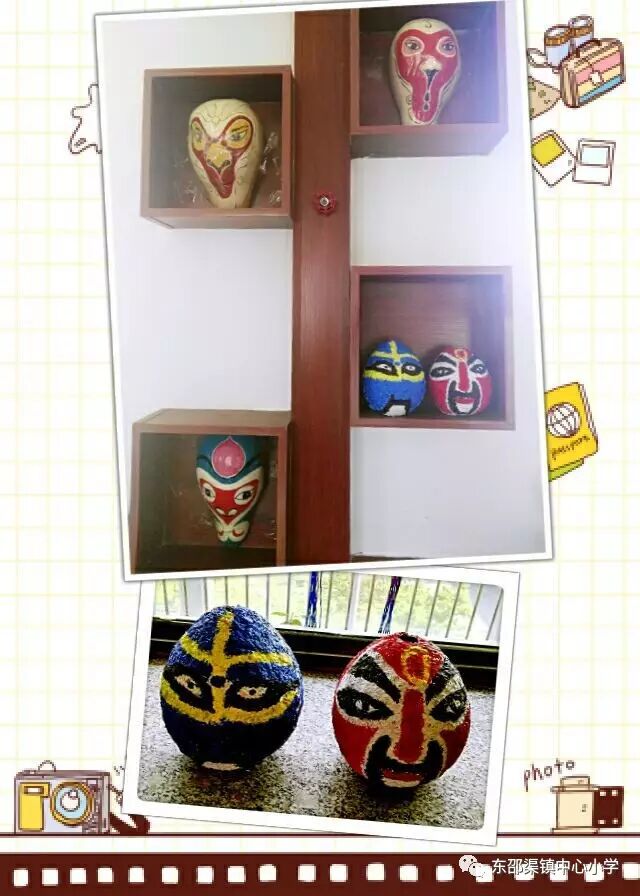 脸谱艺术是人类留给我们的宝贵遗产,是我们中华名族文化的瑰宝,也是人类文化的精品,是我们应该继承和发扬的。下面是教师在葫芦上画的脸谱,看到下面在一起的那两个脸谱了吗?那是用纸浆做成的葫芦,然后画成的脸谱!是不是很厉害?
