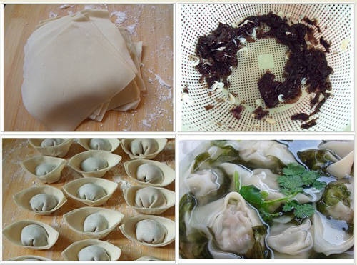 4、煮开水,水开放紫菜和虾皮,放点盐,胡椒,鸡精,然后煮馄饨,打两次凉水即可。