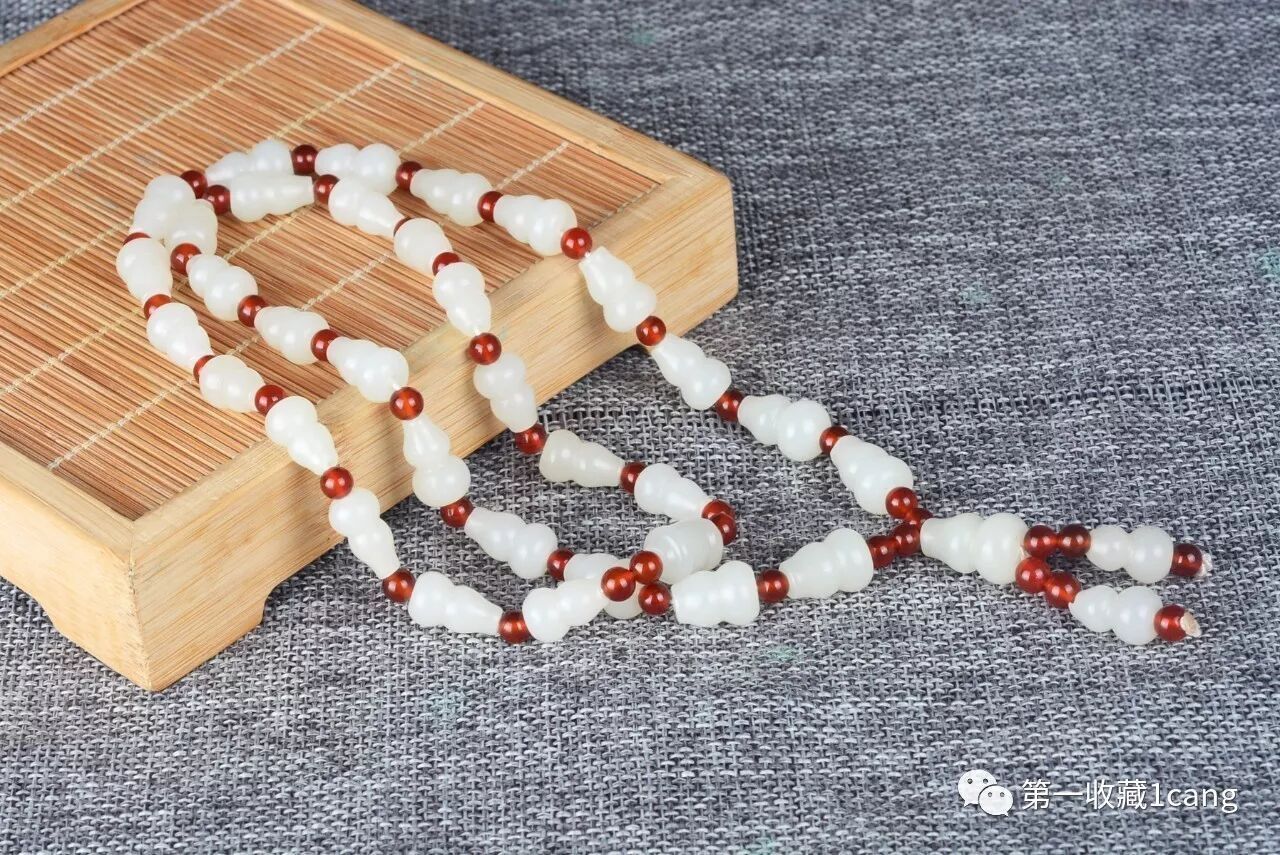 玉质细腻,油性、密度都很好,白度也不错~精雕一颗颗葫芦相连,纯净圣洁,又厚重端庄,极具韵味。总长:62cm,可以做多圈手串,也可以做项链,上手或上身效果都非常漂亮~~有鉴定证书。