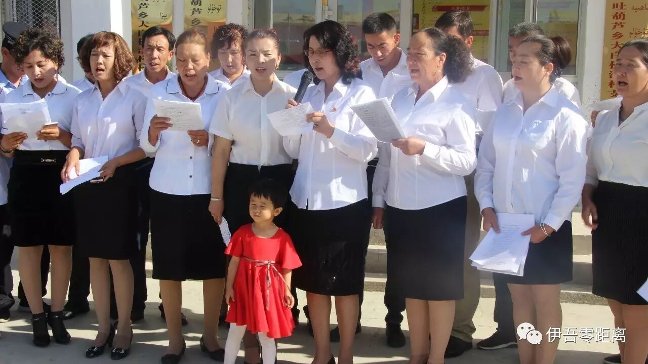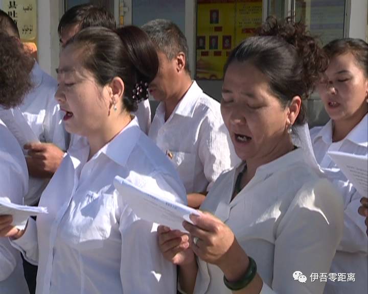 伊吾县吐葫芦乡大白杨沟村村民孜丽汗•哈斯木说,今天我们共同唱了这首歌,感觉很荣幸,歌曲里的歌词令人振奋,我们也学了好几天,现在党的政策很好,我们要继续加油努力,建设好我们的家乡,做好民族团结。