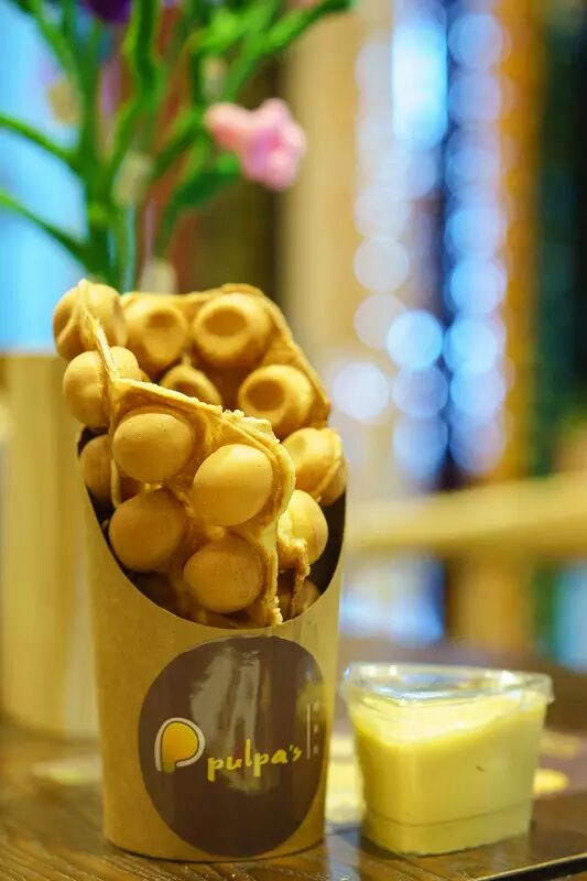 15元的榴莲鸡蛋仔是Pulpa’s创意小吃,松脆温热的鸡蛋仔蘸着苏丹王榴莲酱吃,榴莲控总能把小吃混搭出新花样。