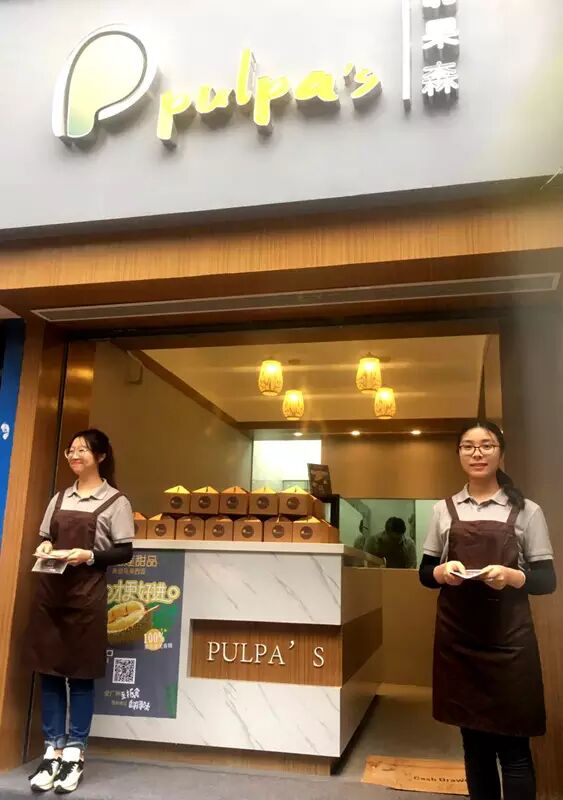 很多人对榴莲的印象,想必是从“泰国金枕”开始,殊不知马来西亚才是榴莲的故乡,300多个品种让人眼花缭乱。啪果森甜品店合伙人“十一”姐,是个不折不扣的榴莲控,数年前第一次吃到苏丹王D24时,就被惊艳到不要不要的,索性做起了榴莲供应商,供货给广州各大星级酒店和知名餐饮连锁。但这并不能满足她“一时兴起想吃榴莲”的愿望,和喜欢做甜品的阿Yan一拍即合后,就有了位于五羊新城寺右二马路的这家啪果森Pulpa’s甜品店。