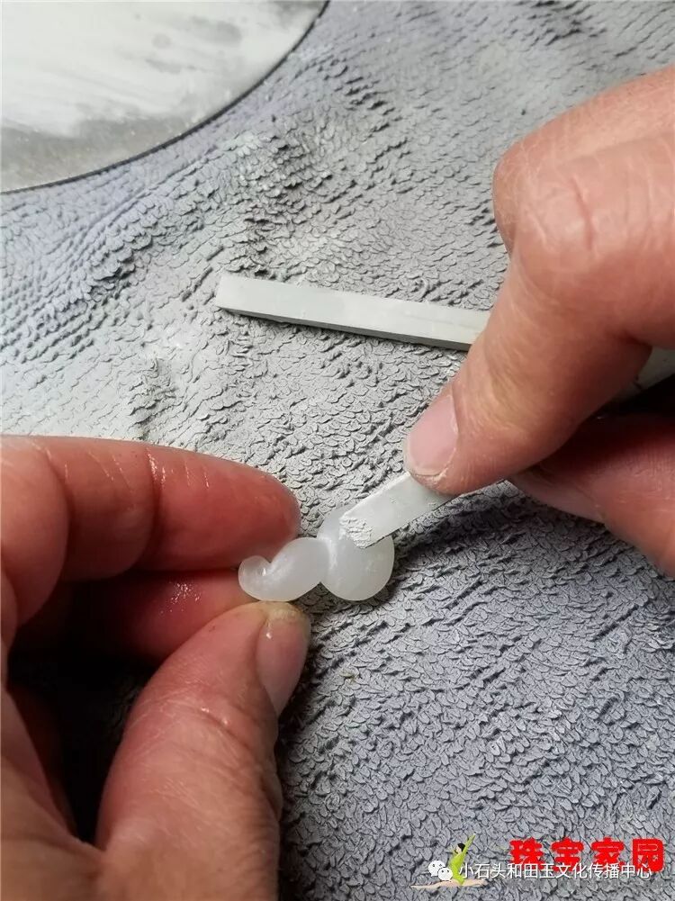 以前做手镯的边角料,细度油性都很好,就是因为料子块头比较小,再加上咱们家却人手,一直没有顾得上雕刻。这次咱们赶在新春来临之际,在广大群友的建议下,专门定做了一批葫芦挂件(福禄),作为新春福利,感恩回馈各位好朋友一直以来不离不弃的支持和爱护。葫芦寓意福禄,是国人最喜爱的吉祥物之一, 小边角料,做葫芦刚好,最大限度的利用原料的同时,也很好的表现了和田玉的温润内敛。 雕刻过程,每一款作品都有着设计、切料、出大型、定位、细节的修理和抛光这样一个过程,每一步都是手艺活。 当然最后的效果也是特别棒的,温婉细腻,含蓄内敛,像这样纯天然原生态的题材,具有一种特殊的亲切感和美感,深受大家的欢迎和喜爱。