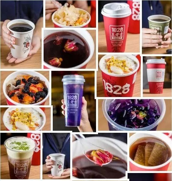 旁边葫芦形的展示区,有王老吉经典凉茶、古法祛湿凉茶、古法润燥凉茶、古法烟熏酸梅汤的原料展示,并文艺的写上: